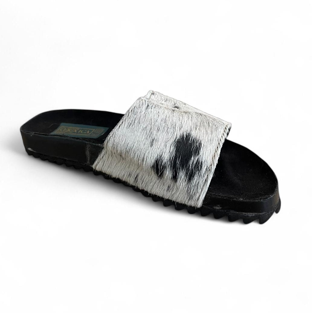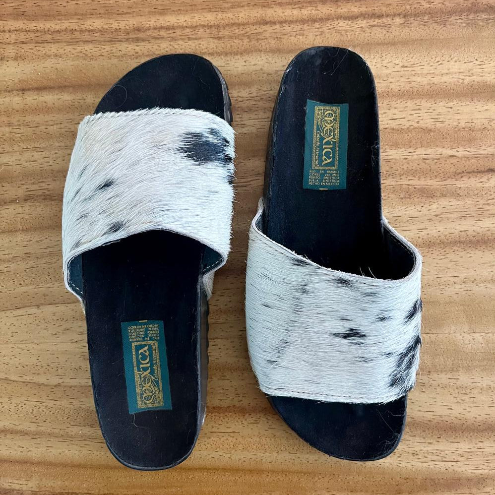 Cada par es único, ya que el pelaje conserva su patrón original, lo que convierte a estos huaraches en piezas irrepetibles. El corte ancho y cómodo en la parte superior abraza el pie con suavidad, mientras que la textura del pelaje aporta un toque distintivo y elegante, ideal para quienes buscan lo artesanal sin renunciar a la sofisticación.